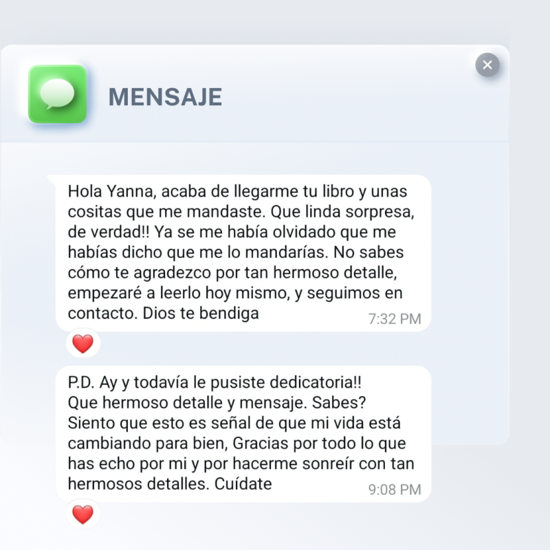 Hace un año pasé por una situación de rompimiento, y gracias a los consejos, libros y videos de Yanna, he logrado superarme y estar feliz nuevamente. Yanna, muchísimas gracias, muchos éxitos y te quiero mucho.