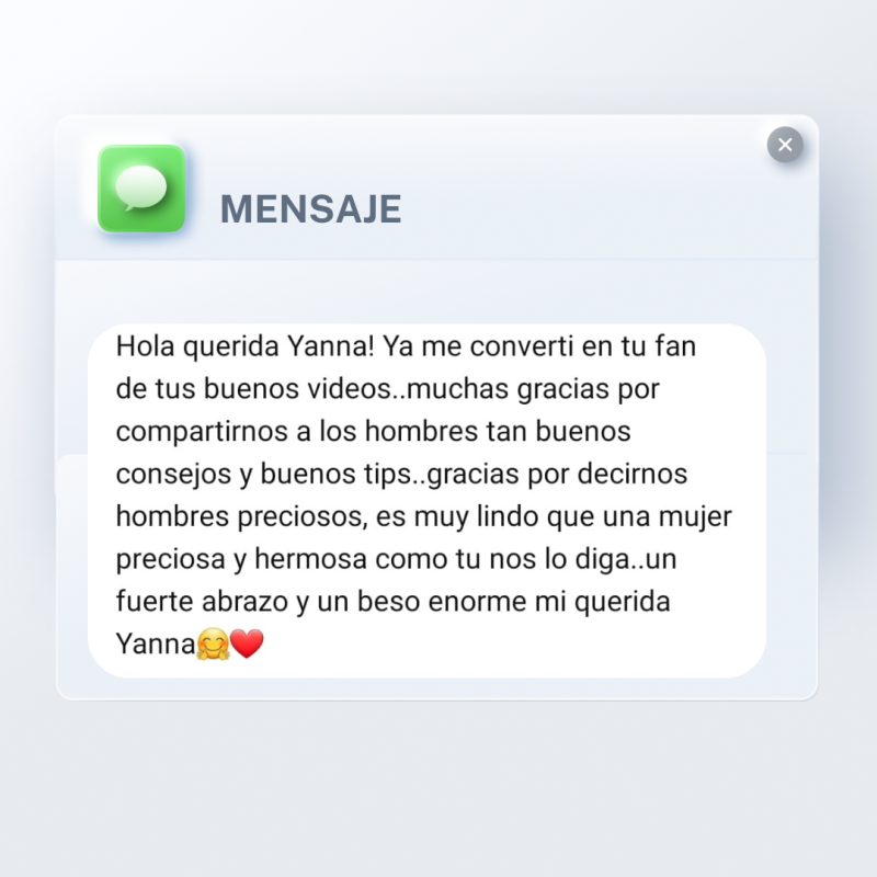 Descubrí a Yanna a través de las redes y desde entonces me ha encantado seguir sus videos y lives. Lo que más me ha gustado es la forma tan clara y cercana en la que Yanna explica todo. Aquí encontré una empatía que no he visto en otros lugares. Recomiendo este espacio porque realmente es bueno e interesante, ¡vale mucho la pena!